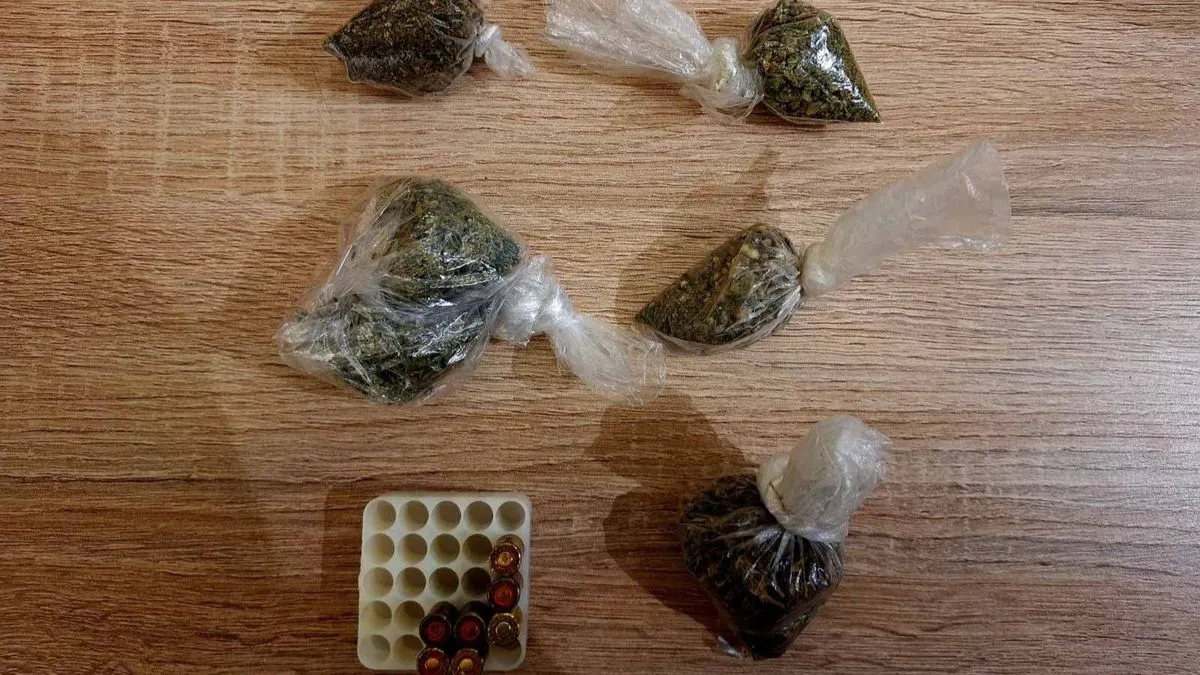 Pronađena je određena količina materije koja asocira na marihuanu, dva pištolja, spremnik za municiju, određena količina streljiva te drugi predmeti od interesa za istragu.