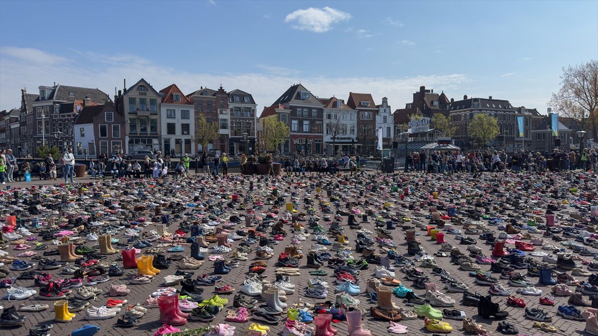 Hiljade pari dječjih cipela izložene su u nedjelju na glavnom trgu holandskog grada Leidena kako bi se odala počast palestinskoj djeci ubijenoj u izraelskim napadima na Gazu.