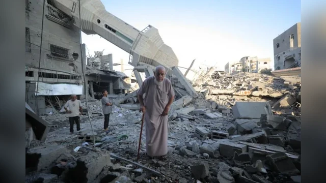 Munara džamije Abdullah Azzam u izbjegličkom kampu Nuseirat u Deir al-Balahu, u centralnoj Gazi, koji je u opasnosti od urušavanja, predstavlja ozbiljnu prijetnju civilima nakon što je teško oštećen u izraelskim zračnim napadima.