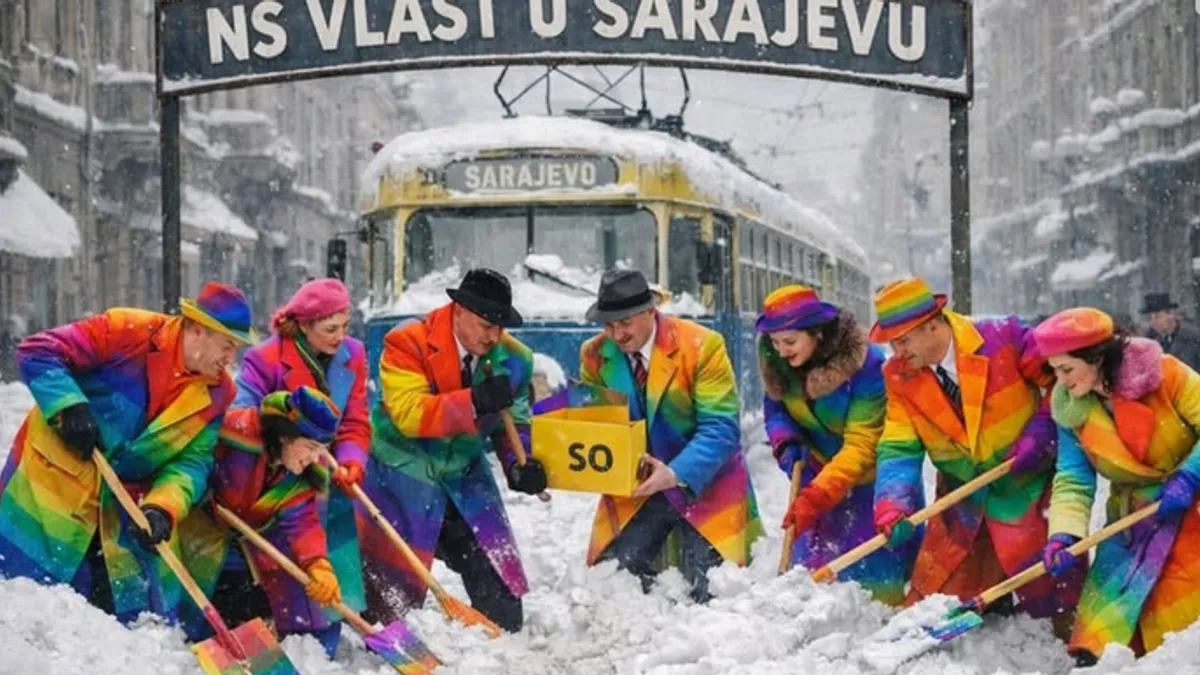 Članovi Naše stranke jučer su organizovali akciju čišćenja u Titovoj ulici u Sarajevo. Fotografije kako u cipelama, kaputima i odijelima navodno lopataju snijeg na tramvajskoj stanici, objavili su, naravno, na društvenim mrežama.