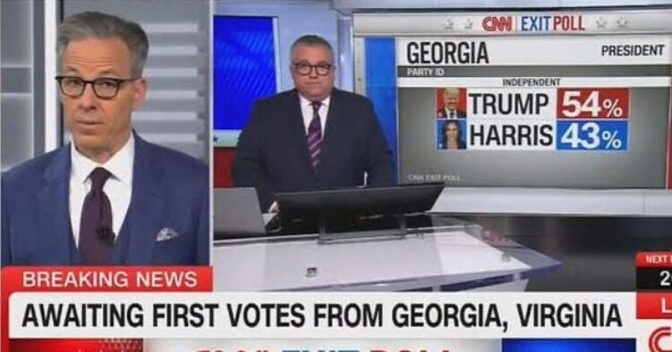 Kada je politički direktor CNN-a David Chalian rekao Tapperu da izlazne ankete pokazuju kako nesvrstani birači u Georgiji daju prednost Trumpu s 54 naprama 43 posto, voditelj je bio vidno šokiran.