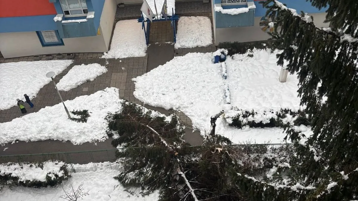 U sarajevskom naselju Grbavica ponovo se srušilo stablo usljed težine snijega, leda i kiše. Veliki bor koji se srušio u blizini škole u ovom naselju probudi je i stanere u bližnjim zgradama.